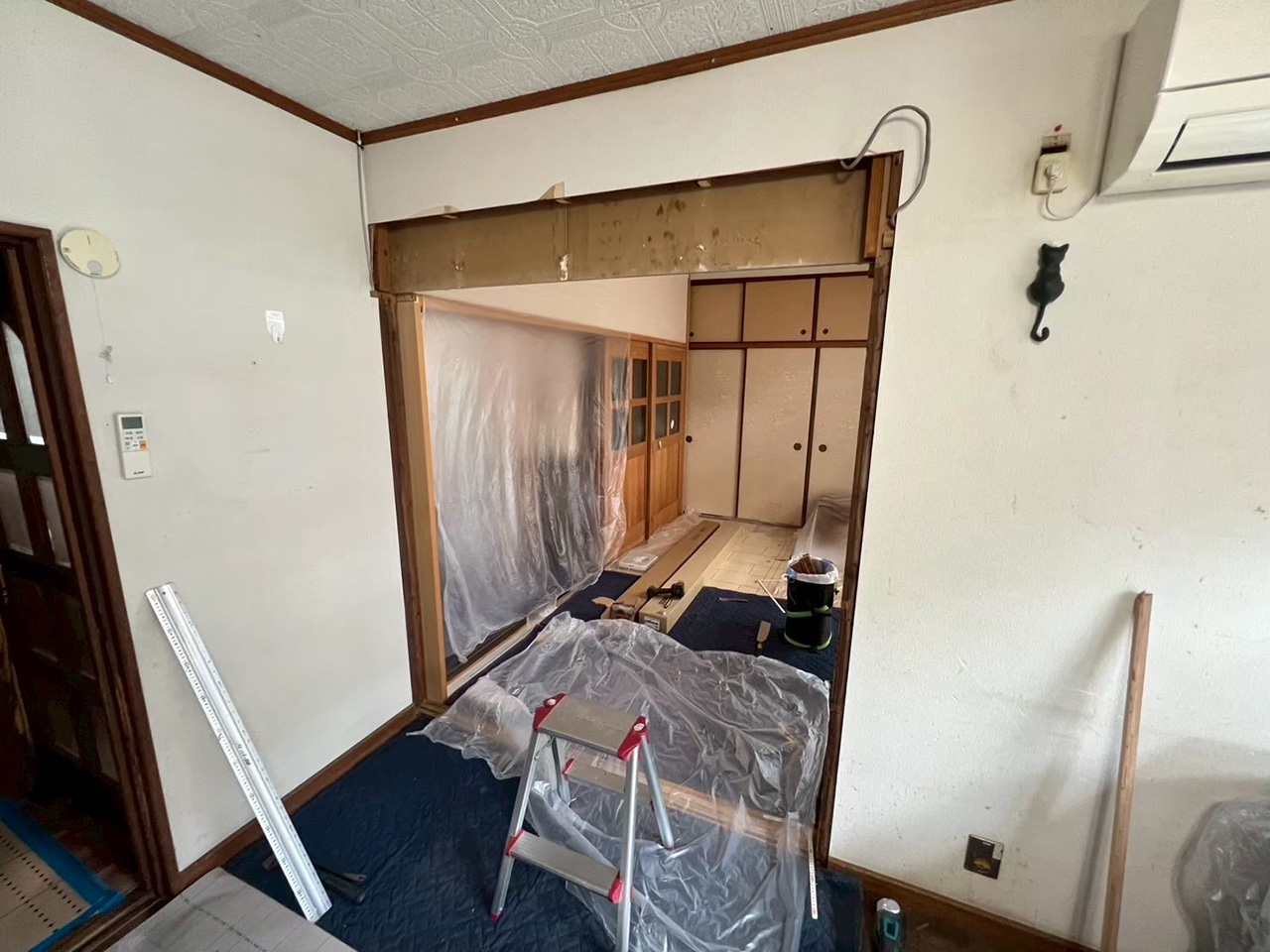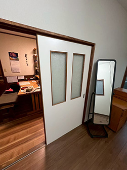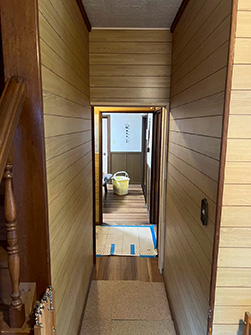 今回は、お子さんの部屋を2室に分けました。元々2つに分けられる様、出入口が2つ設けられていたので、真ん中で間仕切壁を作り両面クロス仕上で完成。大工1日、クロス半日の工事でした。お子さんがまだ小さいうちはカーテンなどで仕切っておけますが、成長とともに個別の部屋が欲しくなる様です。今回と同じ内容でしたらおよそ20万前後。家具で間仕切れるものも色々と出ているので、一度よく検討してから御依頼下さい。