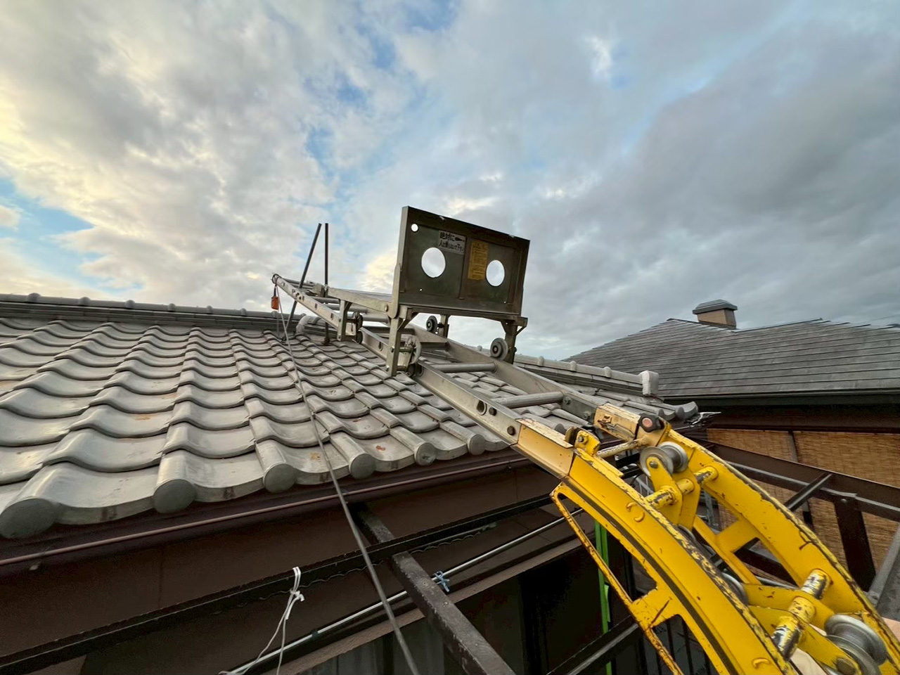 屋根に上るのに命綱は無いんです。足の感覚だけで瓦の上を行ったり来たり!!