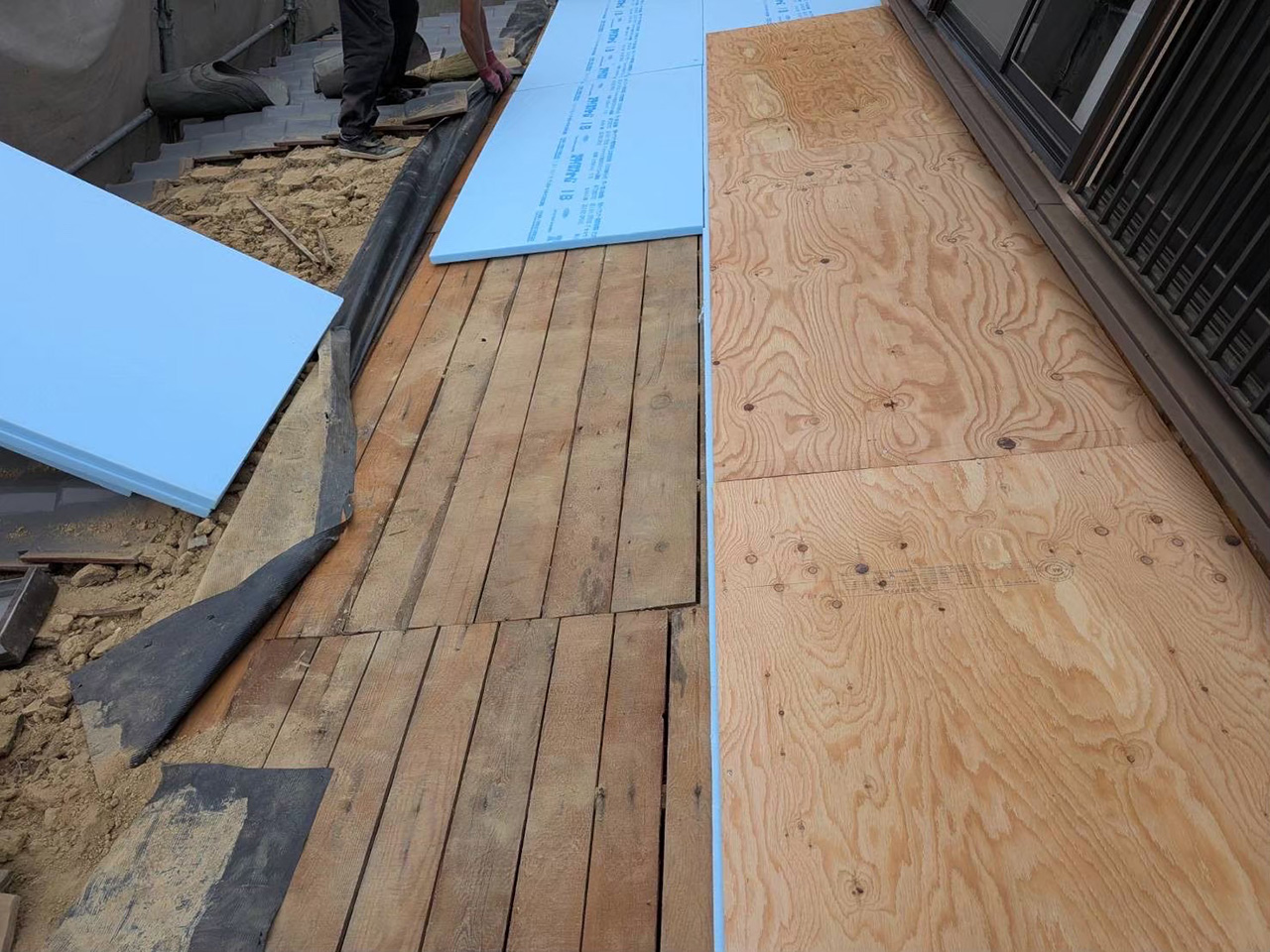 今回ご紹介するのは、屋根の葺替と外壁塗装、その他内部改修工事の様子です。水廻り入替と内窓は補助金を利用されました。屋根はニチハの『アルマ』アスファルトシングル葺。外壁塗装はニッペの『パーフェクトトップ』(耐久性約15年)。一部、補強と断熱工事施工済。ダイニング入口扉を廊下側へ移設することで動線が良くなりました!施主様によると、ダイニングと和室の扉を開けることにより、夏 リビングの冷房1つで十分賄えたそうです。内窓を設置したことも断熱効果が上がった一因だと思います。浴室扉は捨てずに寝室扉として再利用をご希望されましたが、見事 大工さんの手により再生されました!