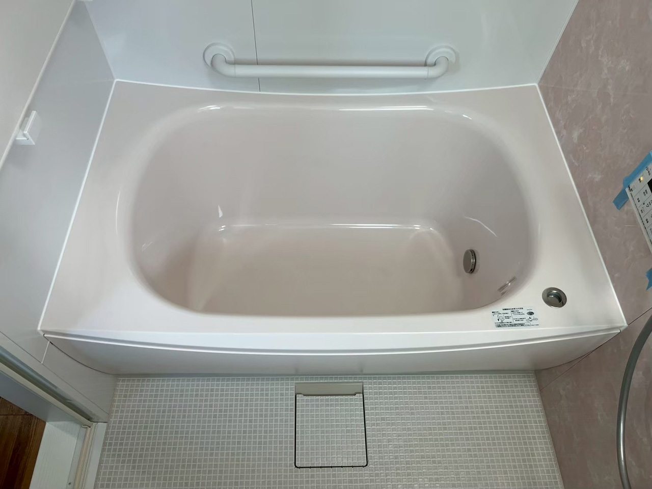 インプラス取付完了後。色は浴室パネルの色と合せてホワイトにしました。