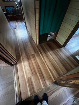 一昨年は他の部屋の床増し張り工事やベランダ床の張替を御依頼いただき、昨年引き続き3度目のご依頼をいただきました。今年の年賀状に図書室大活躍しています!! と、嬉しいお便りが(^^)/